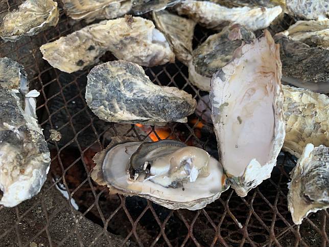 炭火燒的熱烈,蚵殼在炭火上劈啪作響,炭香蚵香四溢,對於愛吃海鮮的饕客來說,是相當享受的!不過丹丹跟另一位小編朵瑞斯因為中午已經吃了一大盤麻油蚵仔麵線以及炸蚵仔酥,所以戰力只有少少一籃而已嗚嗚,所以這經驗告訴我們,來這個行程之前,千萬別吃蚵仔相關正餐,否則到了吃到飽的重點環節就使不出力來,超悲情的啊~~