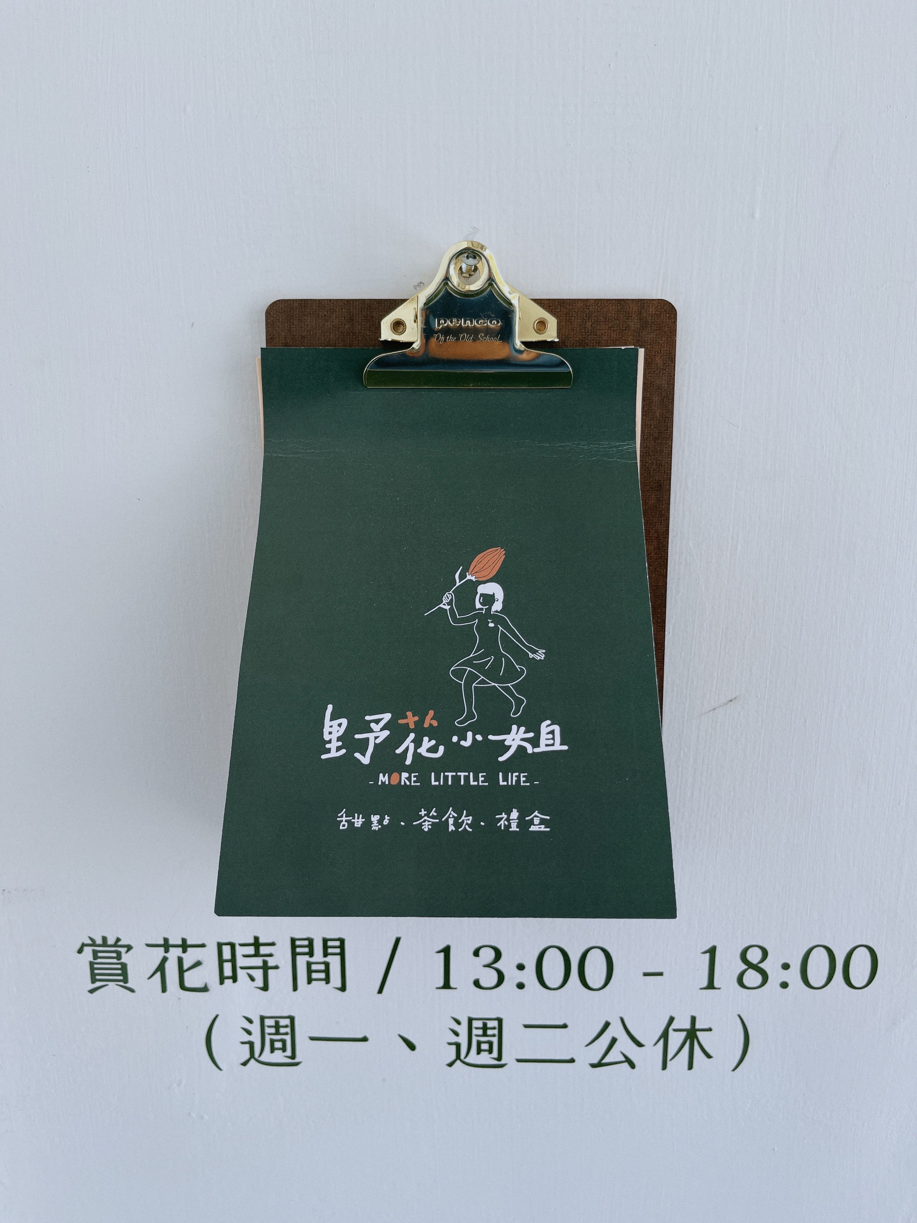 茉莉莉的甜點品牌「野花小姐」,簡單的門面、設計質樸的菜單,主要是販售戚風蛋糕、布朗尼、檸檬蛋糕、肉桂捲,都是選用台灣在地,像是南化、永靖、屏東、雲林的食材製作,推薦給大家。
