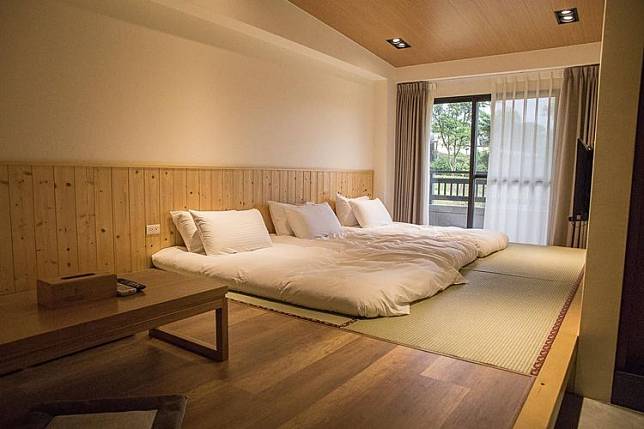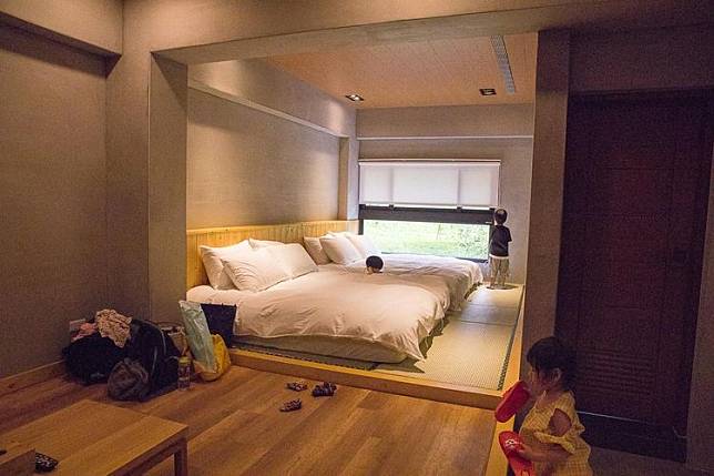 雙人房, 就是簡約清水模的和室房,帶小小孩去比較不用擔心滾到床下,