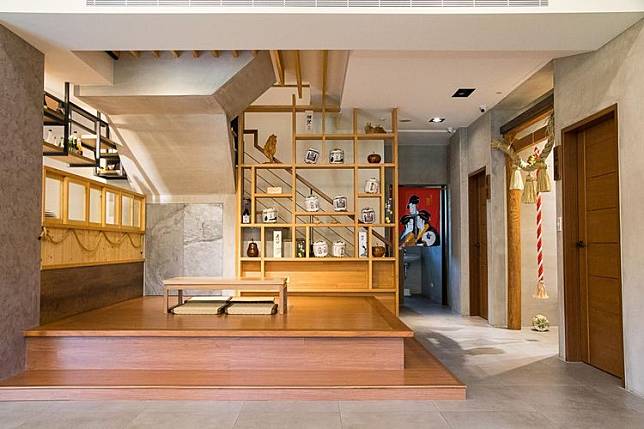 民宿內部就是以木質為主體做裝潢,有著溫暖的色調,老闆因為有去京都實地探訪民宿的建築跟經營,回來之後希望也打造一個這樣的環境讓大家不出國也能體驗。大廳也有營造大空間~讓小孩在這邊活動也不用太擔心撞東撞西