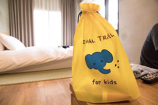 親子友善再一發, 民宿備有兒童使用沐浴乳洗髮乳, 牙刷牙膏等等的衛浴用品, 而且超可愛的袋子裝~媽媽開心!!!!!