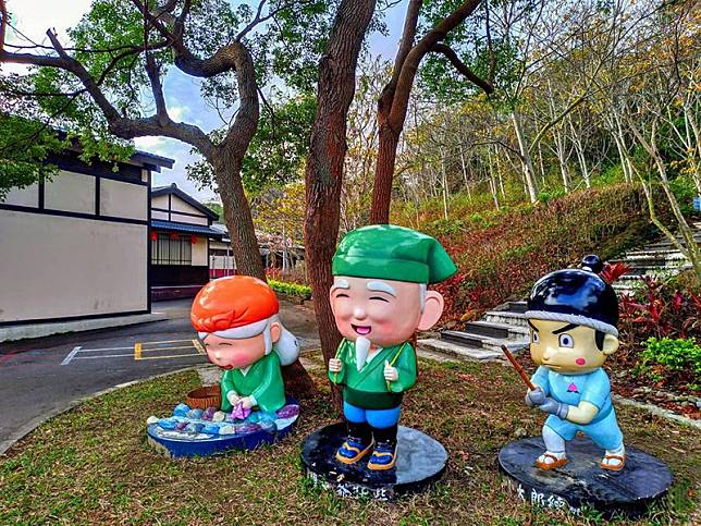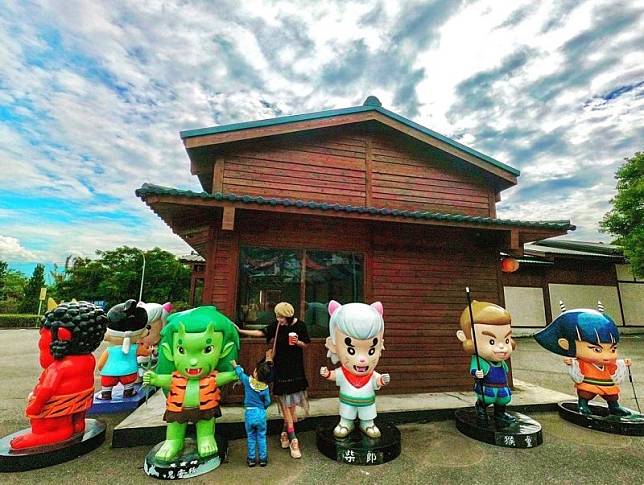 苗栗銅鑼客家大院內腹地十分廣大,而且處處是驚喜,除了桃太郎日式建築讓你彷彿一秒來到日本外,還擁有很多可愛的裝置藝術,園區由顏色鮮艷的18隻貓貍守護著,每隻狸貓的表情與動作都有些微的不同,快點大手拉小手看看自己可以找到幾隻。