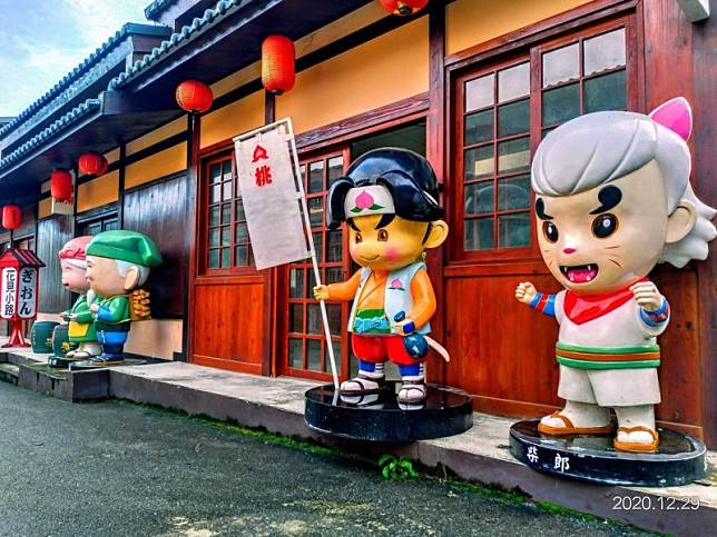 園內最好拍的莫過於桃太郎日式建築,原本是紀念品的商店街,現在已經人去樓空,但是建築本體及桃太郎相關的裝置藝術都仍保留了下來,來此還可以與可愛又逗趣的桃太郎裝置藝術拍照,走在沒有人的日式街道上更有一種獨特的氛圍。