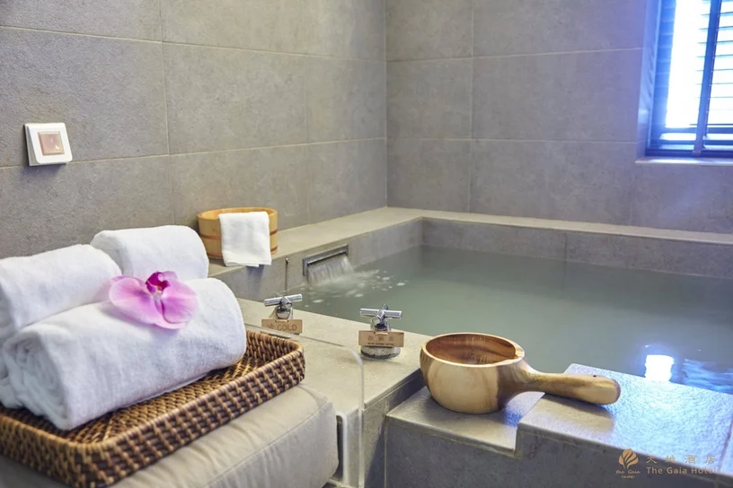 享溫泉共有五種房型,分別為湯瀧、大屯、平田、實橋和享泉套房,而飯店中的湯種為號稱牛奶湯的「白磺泉」,濃厚的硫磺味泡起來相當有感,除了能助於減緩疲勞外,還能讓泡過溫泉的皮膚變得更加細緻,去到新北投絕對要來體驗看看!