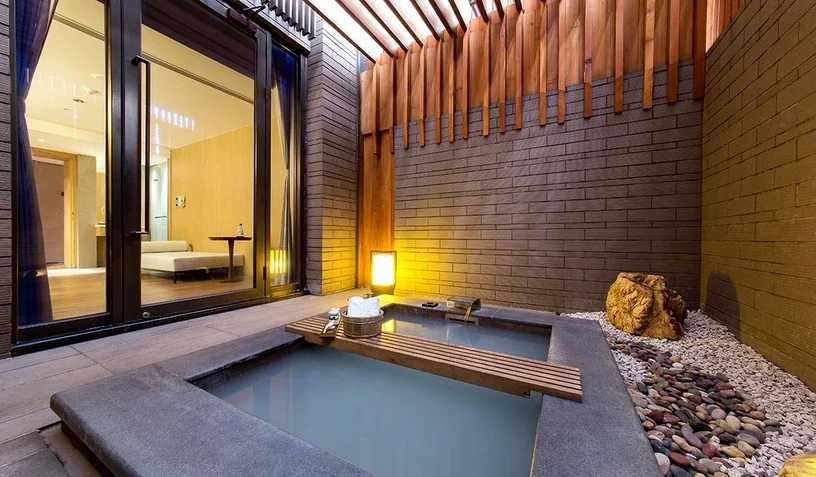 三種個人湯屋分別是「頂級日式房、頂級歐式房、尊榮歐式房」,半戶外的露天溫泉相當有隱蔽性,裝潢也採用印度的黑曜石,硬度高的特性才能抵抗硫磺溫泉的侵蝕,平日只需要台幣2800即可享受,想要好好放鬆泡溫泉的人,這裡絕對會是首選!