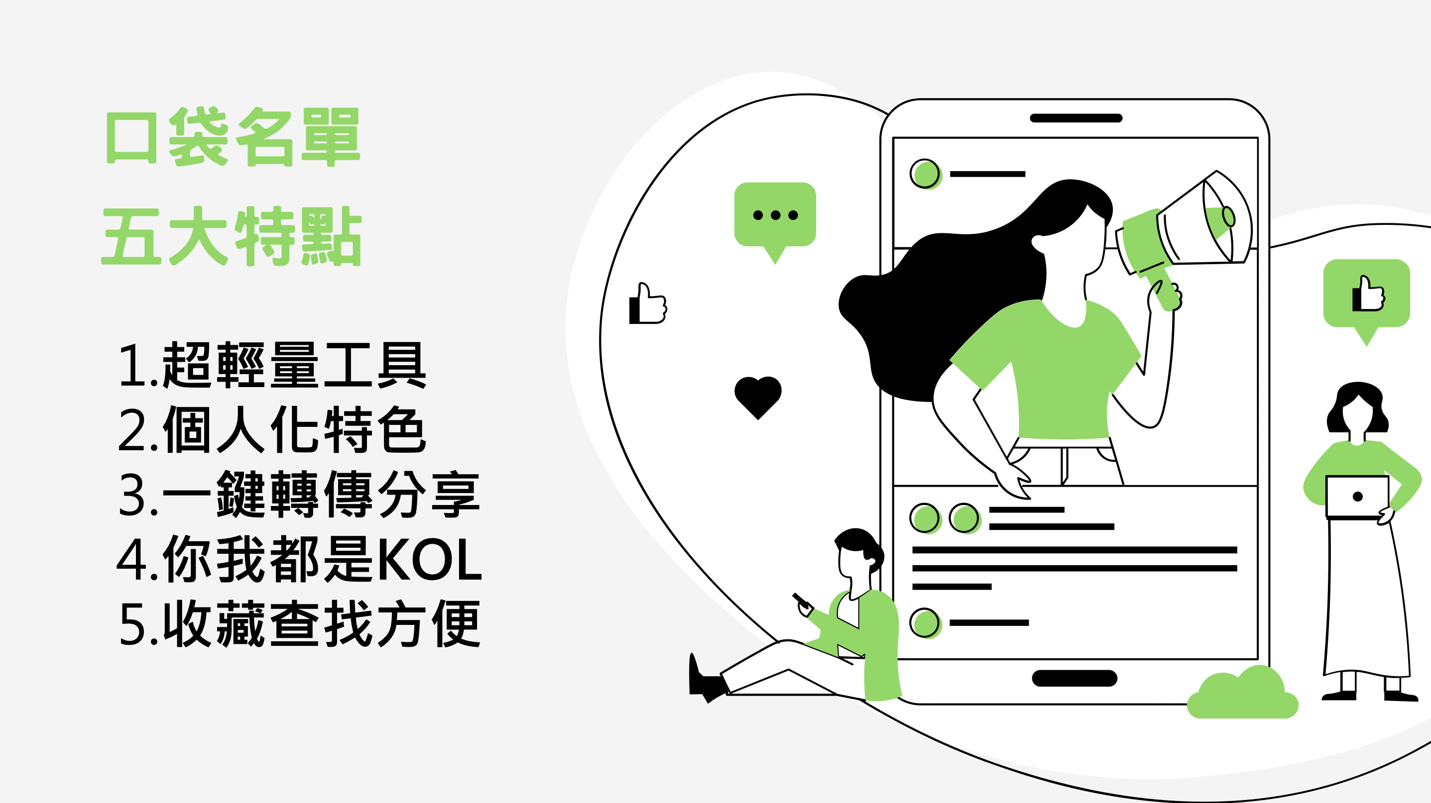 - 你我都是KOL(意見領袖):有超多私藏景點、愛店都沒人懂?口袋名單就是你征服親朋好友的秘技;就算只是傳給身邊的人,你、我都能搖身一變成為美食美景意見領頭羊,化身意見領袖不是夢。