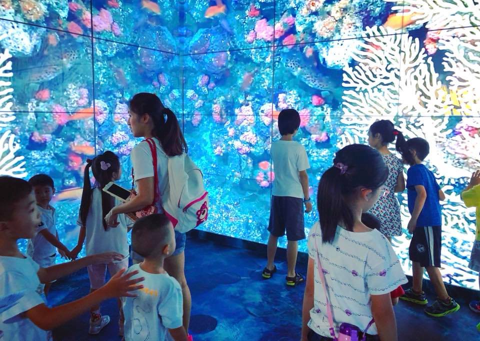 這座位於1樓的「虛擬海底隧道」,先是以繽紛的魚群彩繪帶著遊客進入海底世界,並結合360度3D幻視技術、VR虛擬實境、以及魚群互動數位展示,帶著大家認識水下考古學家的工作。尤其是水下考古VR體驗,只要穿戴上特殊裝置,就能進入海洋冒險的虛擬世界,探索水下沈船與文物、修補古物破片,是不是感覺超有趣的呢?