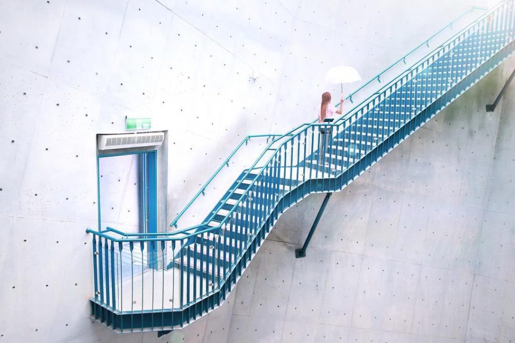 有別於一般博物館設置制式化手扶梯,十三行博物館的「清水模長梯」成為IG上討論度最高的打卡熱點。緊貼清水模牆面、看似無盡頭的階梯、以及從天井中投射期間的光影變化,吸引不少網美們停下腳步取景。略帶漂浮感的建築設計、以及神祕的灰階色調,也讓這處打卡景點被形容有如走入宮崎駿動畫裡的神隱少女世界。