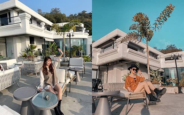 鄰近台中大坑風景區,中台科大旁的「眺高」,外觀採全白色系、簡潔又具現代感的設計,營造出濃濃的異國風情,讓人彷彿來到了國外的高級旅店,整間餐廳內部以清水模設計為主,不管白天或夜晚,室內或室外都能拍出質感美照。