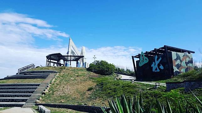從大義宮旁道路再往上1~2分鐘,可以發現這處鏤空涼亭,雖無遮涼處,不過從這裡看下去的風景相當不錯,也是大家來到竹灣大義宮會順道快閃的打卡景點之一。