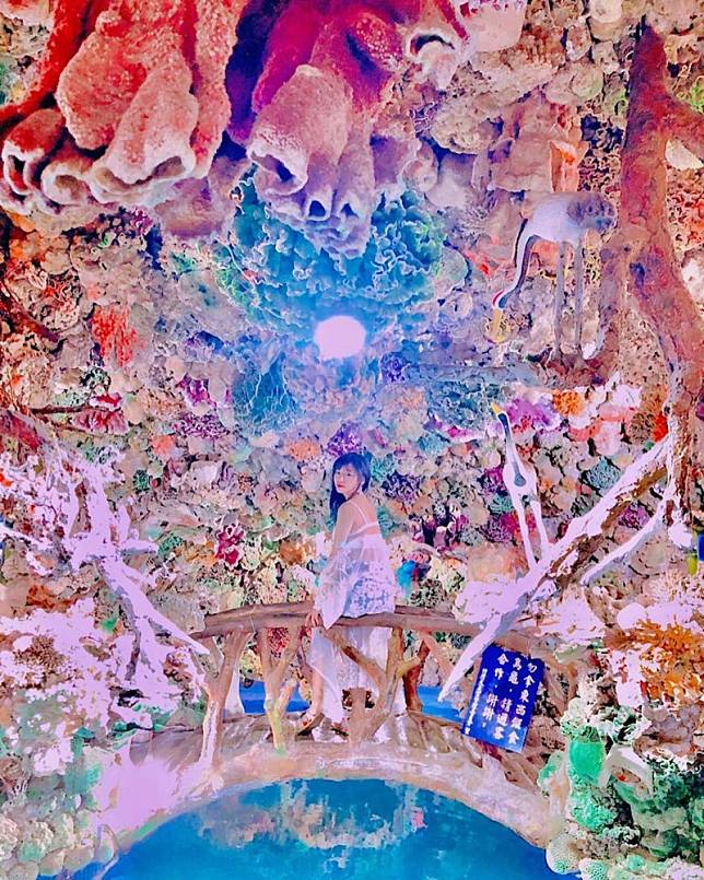 看似一間平凡的廟宇,其實可不簡單!竹灣大義宮是目前台灣唯一合法飼養海龜的廟宇,而且廟宇下方還隱藏著一個蓮花珊瑚洞,洞內佈滿珊瑚蓮花等奇石、鯨魚骨的裝飾,讓你走進去有一種身在海龍王宮的錯覺,透過取景再適當的修圖後,大家看到照片都會不自覺的驚呼「也太夢幻」!