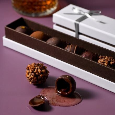 松露巧克力外觀是不規則的球狀,而內層則是包覆著柔軟滑順的甘納許,還有不同的口味,有些會加入南投金萱茶、咖啡、君度橙酒、干邑白蘭地…等不同風味,每一次品嚐都有不同的驚喜感!