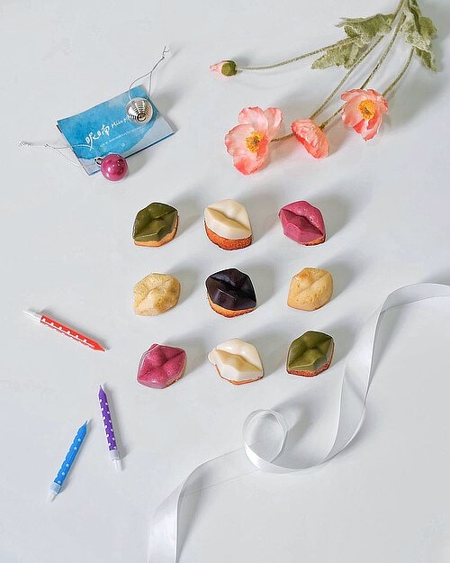 外觀是小巧的蜜唇造型蛋糕,一共有9種不同風味可以品嚐,9同時也象徵了兩人的愛情長長久久,讓品嚐的人可以感受到送禮人的濃情蜜意!