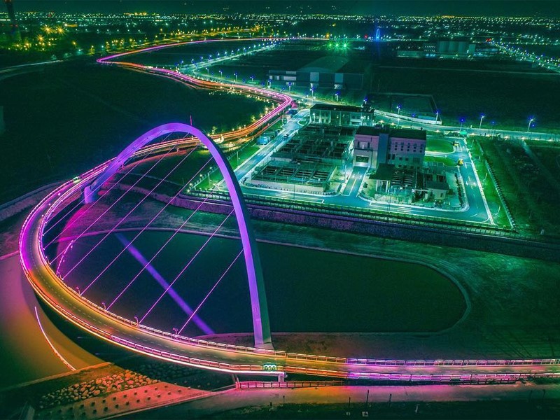 嘉義在馬稠後產業園區建造一條觀光休閒的【策馬橋飛輿自行車道】,自行車道不僅圍繞整個園區,一到夜晚,整條自行車道會散發出耀眼的七彩燈光,是全台唯一的彩虹自行車道,讓人沉浸在華麗的光影變化之中,是喜歡夜晚騎車的民眾的首選自行車道。