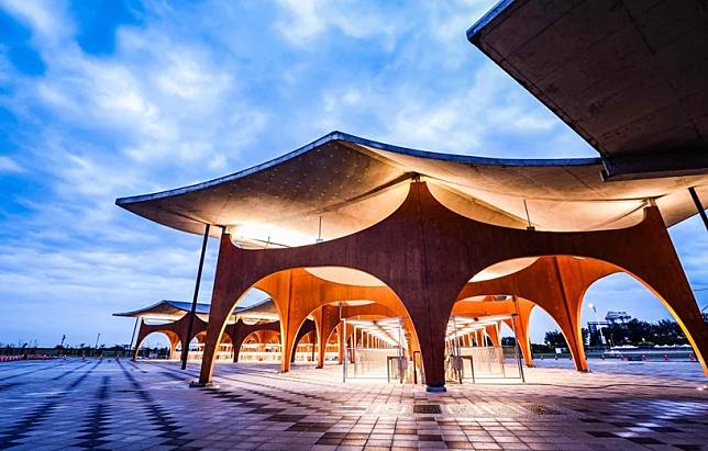 波光市集是全國首座以海浪為設計理念的海岸建築,主打木質感構成的「黃金沙灘色系」特色市集,與延伸海面的「大波浪狀屋頂」融入海港,夜晚還會有光環境營造,讓絕美地標映襯著海景,在這樣的夜景下散步是不是超浪漫的~