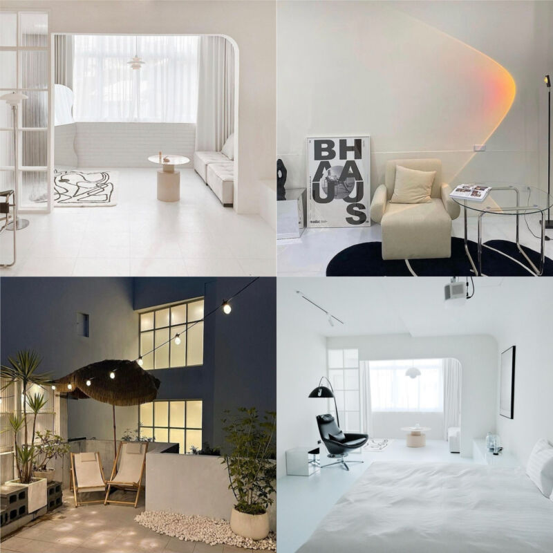台南擁有許多韓系民宿,首先就要來推薦2021年新開幕的「白墅」,隱身在大馬路旁,外觀像是一般的咖啡廳,一進去公共空間,就是如小攝影棚般超好拍的場景,還有浮誇系旋轉樓梯!整間民宿就如它的名字,乾淨的結白色調、簡約質感的韓系風格,超大空間感設計,黃光吊燈妝點,搭上白色躺椅,一踏入就覺得舒服與放鬆,讓人不捨離去。特別的是,每一間房型不僅是以純白色系搭配簡約的傢俱,而且還採用了投影螢幕,讓房客可以看自己想看的影片!