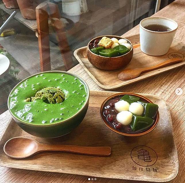 光是看到這碗超級抹綠的薏仁湯搭上不甜膩的抹茶凍、萬丹紅豆以及有嚼勁的白玉糰子,就可以感受到店家的用心。而店內為可愛的日式裝潢,配上店家別出心裁設計的甜點,整體感覺超級舒適的。