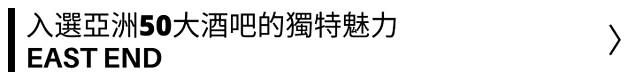 位於台灣屈指可數的Design Hotels™️成員之一賦樂旅居三樓的EAST END,發想源自英國倫敦市東側以酒吧和庶民文化聞名的同名區域,獨樹一格的設計感於2017年入選為亞洲50大酒吧。店內雞尾酒著重氣味與口感層次堆砌,實力深厚的調酒師團隊積極鑽研國際趨勢,常邀請海外名家客座,只求來到EAST END的客人得以享受世界級城市水準的美食佳釀。
