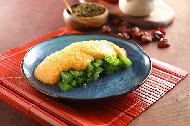 有別於坊間作法,鹹蛋黃的事前工作非常繁瑣,鹹蛋黃呈現金黃色流沙状,與脆口的綠苦瓜結合,讓你對於這道家常菜有重新的認識。