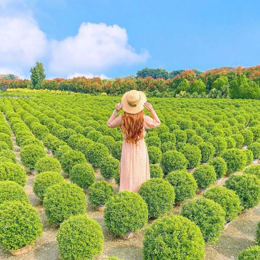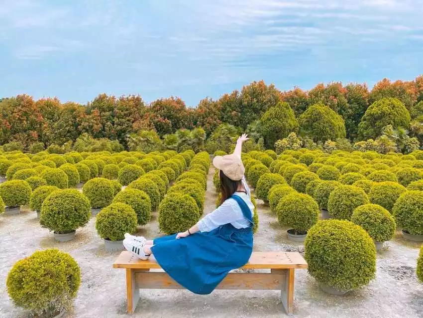 有著台版波波草之稱的「田尾波波草」,遠看像是一顆顆抹茶團子,可愛又圓圓的外表布滿了整片農園,在網路上掀起了一波朝聖熱潮!其實田尾波波草是細葉七里香,在經過園藝主人每年四到六次的修剪之下成為現在大家看到的圓滾滾外型,意外變成彰化人氣的「網紅」!雖然曾經因朝聖人氣太旺而一度暫停開放,但現已改為收費入園,希望大家能共同維持這片美景喔!