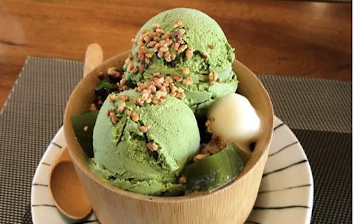 甜點主要以抹茶口味為主的冰淇淋和鬆餅,最受到歡迎,像和風抹茶冰淇淋,搭配茶凍和湯圓,灑上堅果,綠綠的顏色,看起來就十分清爽養生。抹茶都是與日本京都合作供應,吃起來跟日本的味道很像哦!