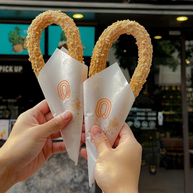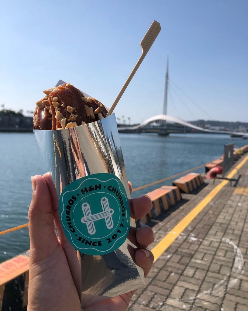 原本座落在民族路的H&H現炸吉拿棒,因為疫情關係所以現今改以攤車形式陸續出沒在各大市集。這裡販售的也是屬於小巧型的吉拿棒,有著甜甜圈口感的酥脆外皮,卻又有著像麻糬般Q彈的內芯,甜點控絕對必點榛果巧克力口味,放肆的淋上香味醇厚的榛果巧克力醬,再撒上幾粒花生碎,不僅顏值高,味道也是美味到不行!