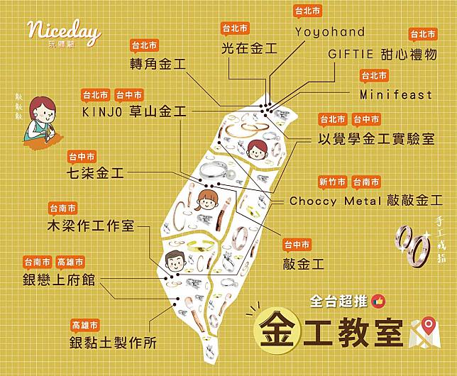 二話不多說,今天 Niceday 小編就要來幫大家介紹全台灣超推薦的金工教室,希望讓每個想嘗試手作的你,都能找到自己的第一堂金工體驗喔!
