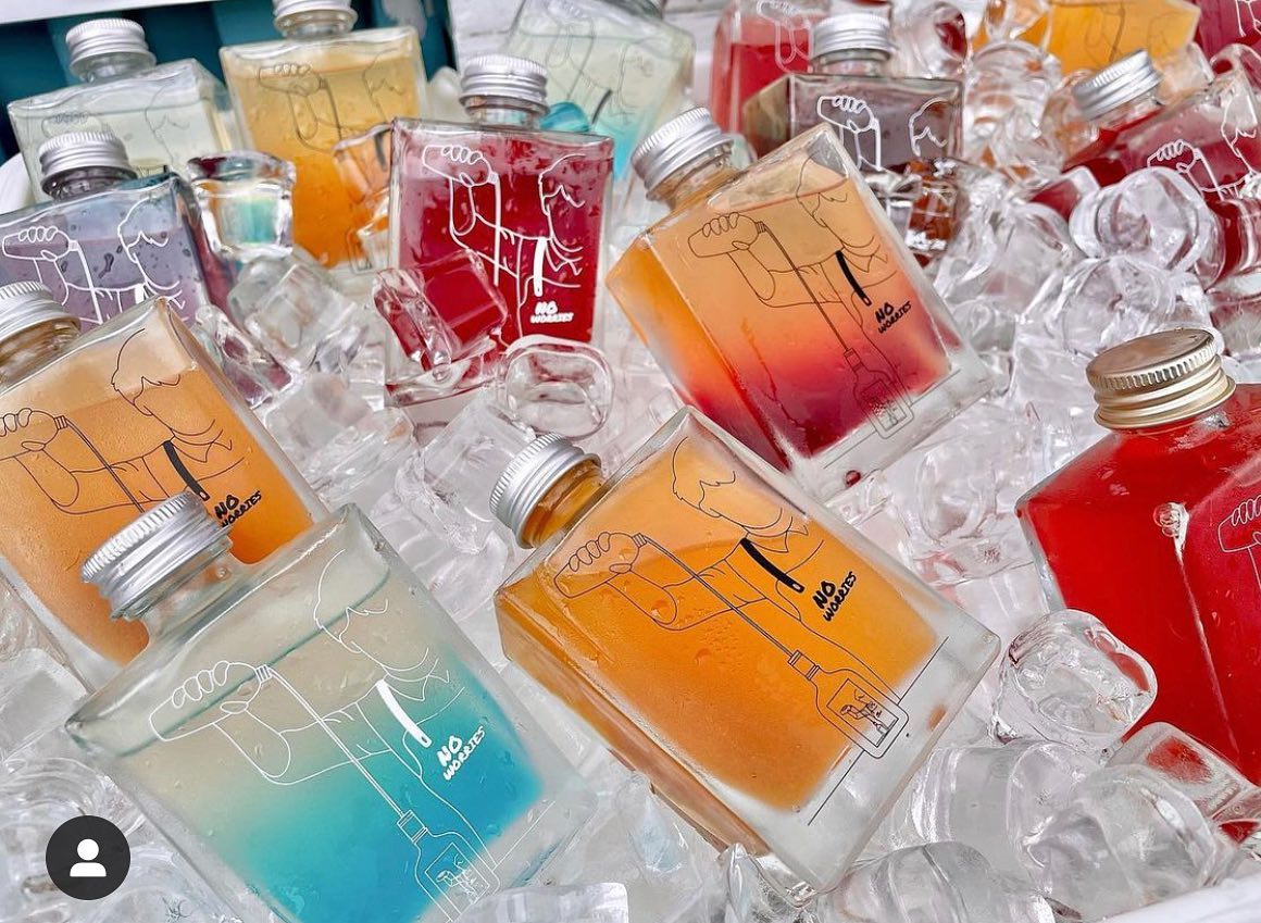 貨櫃市集裡隨處可見主打啤酒、調酒的商家,其中最亮眼的非No worries莫屬~每當日落時分,多口味水果調酒映著夕陽餘暉,清透亮麗的漸層色,不用濾鏡就超好拍,只有自製調酒才會有這麼美的色調~除此之外,盛裝調酒的玻璃隨身瓶也很受女孩們歡迎,誰說喝酒不能有滿滿的少女感呢?快到No worries 體驗一下吧!