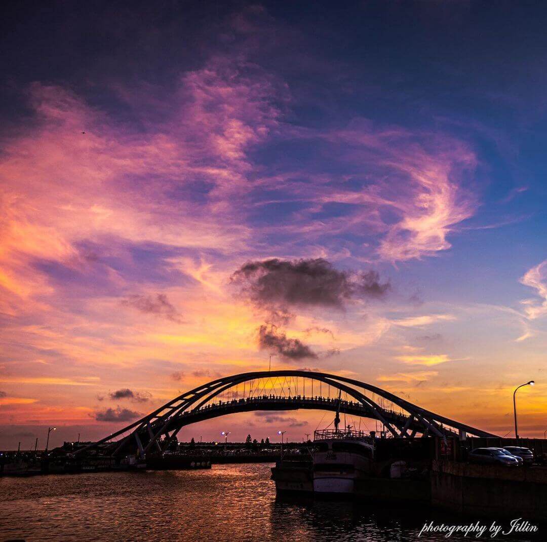 「永安漁港」位於社子溪出海口,環境整潔,有高雅的白色貝殼館,大片綠地草坪及海邊步道,為全台唯一客家漁港。外觀以龍蝦為設計風格的觀光漁市,食材都很新鮮且價位平實。傍晚五點後,永安觀海橋動態光雕點亮夜景,照映在海面上非常浪漫,可以在橋上欣賞美麗的夕陽,更是攝影人眼中的一大美景。