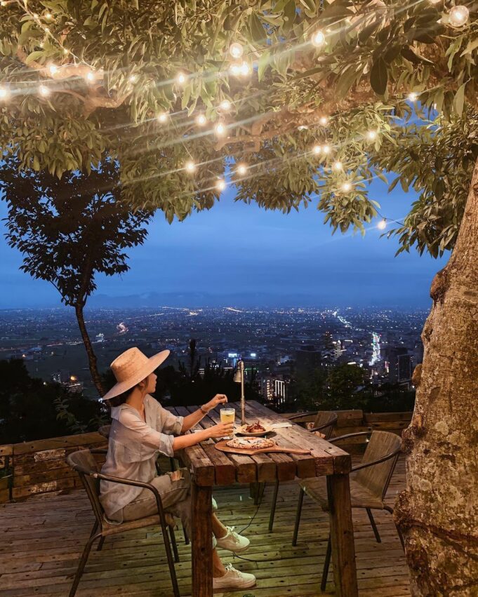 礁溪人氣景點空ㄟ農場,位於山上的好位置,白天黑夜有不同的美,白天能欣賞一望無際的蘭陽平原美景,還能看到遠方的龜山島,到了夜晚,山腳下燈火通明,一邊用餐一邊觀賞礁溪晚上夜景,不管什麼時候來都能享受愜意的氣氛。