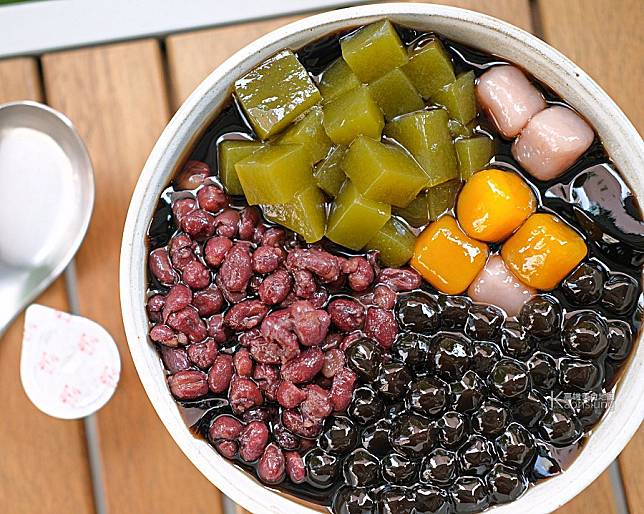 嫩仙草8號,一碗裡可以嚐到4種配料,不僅配色好看,份量也十足,來上一碗可以抵上一餐。