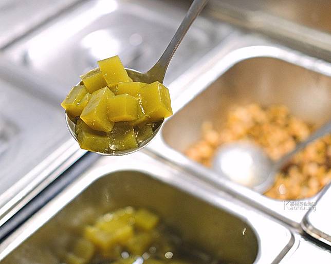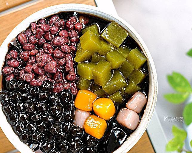 碧綠的抹茶凍,在一堆配料裡特別顯眼,抹茶清香細緻優雅,不甜膩不苦澀,有著蒟蒻果凍般的口感。