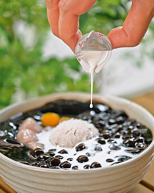 淋上奶油球,是食用前畫龍點睛的最後一道儀式,一小球的奶味香甜,讓嫩仙草釋放更香醇滑順的口感。