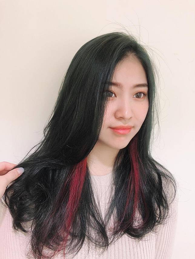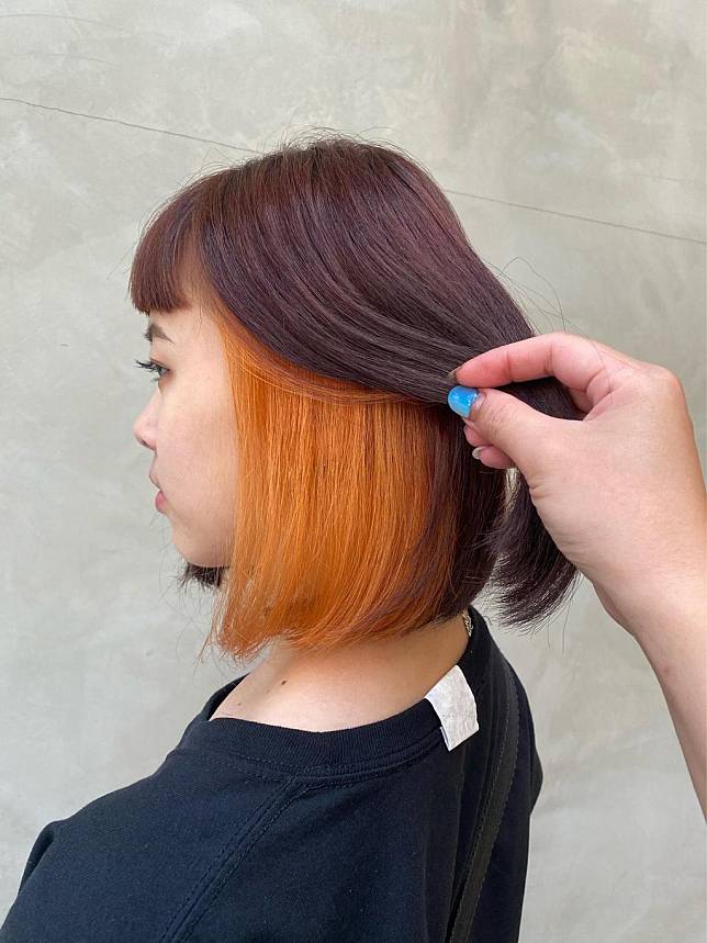 跟雙層染很像,但不一定是內外夾層整片不同色;像這樣染一撮隱藏在頭髮下方,隨意撩起部份髮絲塞耳後,秀雅的長鮑伯也能有小小驚喜感