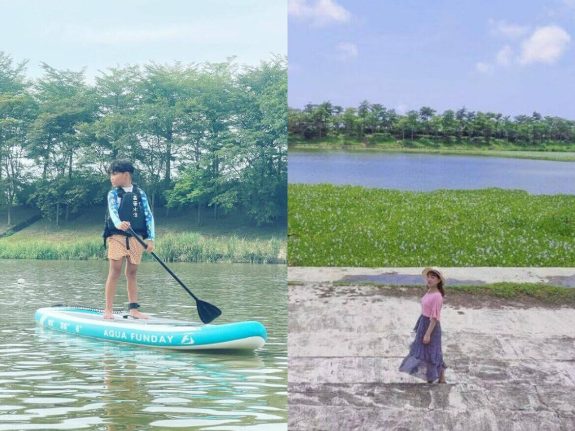「二仁溪流域濕地(港尾溝溪滯洪池)」處於港尾溝溪和二仁溪河川的交會處,前不久歷經重新規劃,現在已經有自行車道,可以散步或騎車欣賞美麗的湖畔風景。作為調蓄洪水並減緩水患的港尾溝溪滯洪池,台南市府也積極推廣其生態保育,與濕地保護聯盟合作,建立戶外環境教育場所,打造「二仁溪故事館」,更提供獨木舟和SUP體驗,可說是非常有特色。