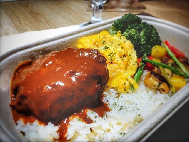 以100%美國Choice等級牛肉拍打的手工漢堡排,淋上特製牛肉燴醬,搭配壽司米、嫩煎雞蛋、花椰菜、奶油時蔬。(圖片提供/沃克牛排)