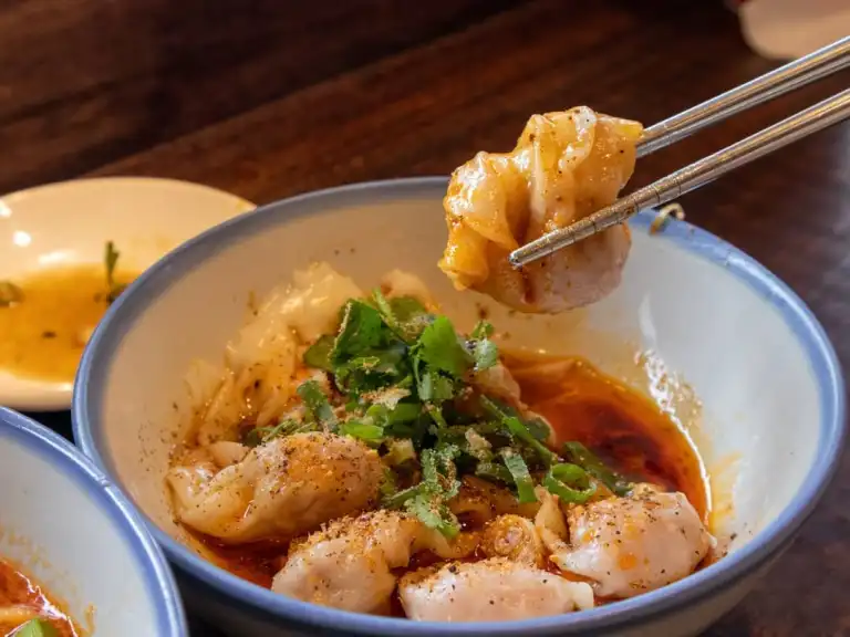 蘭芳小麵(大辣、小辣) $85、紅油抄手 $65