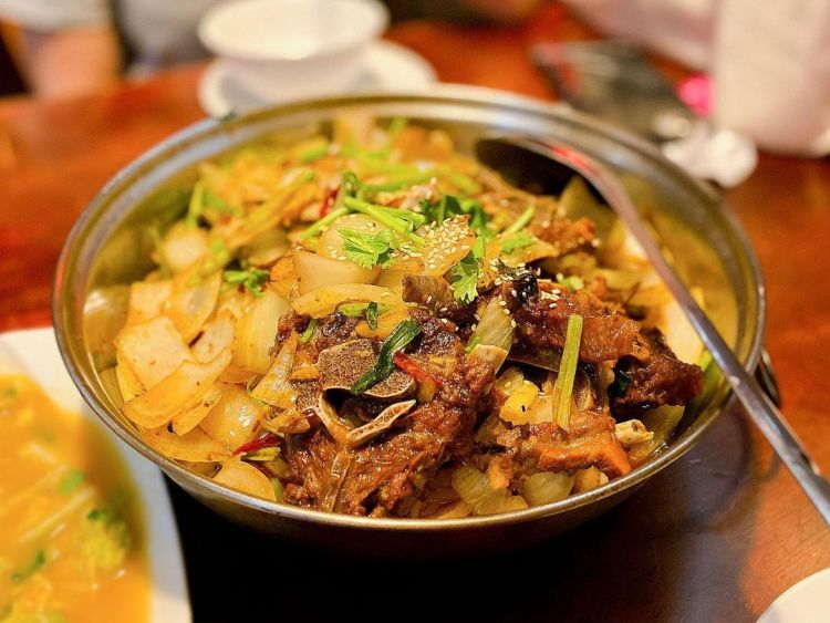 這間江蘇菜館隱身在遼寧夜市旁的巷弄內,非常有特色的北方料理走無菜單料理路線,鹹蛋娃娃菜、羊蠍子、地鍋雞是老顧客推薦的菜色,地鍋雞上頭鋪著像麵疙瘩的皮,吸附底下的湯頭超美味,每道菜都偏重口味,不過店裡沒有提供白飯,否則肯定可以扒個幾碗,店面不大人多記得先訂位,找朋友一起品嘗道地的北方味!