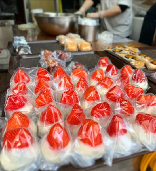 原味麻糬、招牌一口吃、大甲芋頭紅豆 $15/顆、草莓大福$40/顆