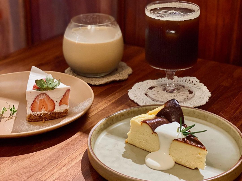 由老宅改建而成的咖啡廳,保留了門口的鐵花窗以及復古風的老木門,店內地板採用了早期的磨石子材質,矮木桌搭配黑色皮質的長椅,時髦但卻給人沉穩內斂的古早味,除了店內之外,後方還有讓人眼睛為之一亮的庭院空間,牆壁能看見斑駁的紅磚,桌椅則是偏歐式風格,竹製桌椅配上蕾絲桌巾,陽光會從頂部的透明玻璃灑落,彷彿身處歐洲的溫室餐廳,美得讓你相機拍不停,還可以一邊喝咖啡吃甜點,一邊慵懶享受整個下午時光。餐點提供鹹食、精緻甜點、咖啡以及水果風味飲品,尤其是口感扎實的巴斯克,香氣及味道濃郁卻不膩口,非常值得推薦。