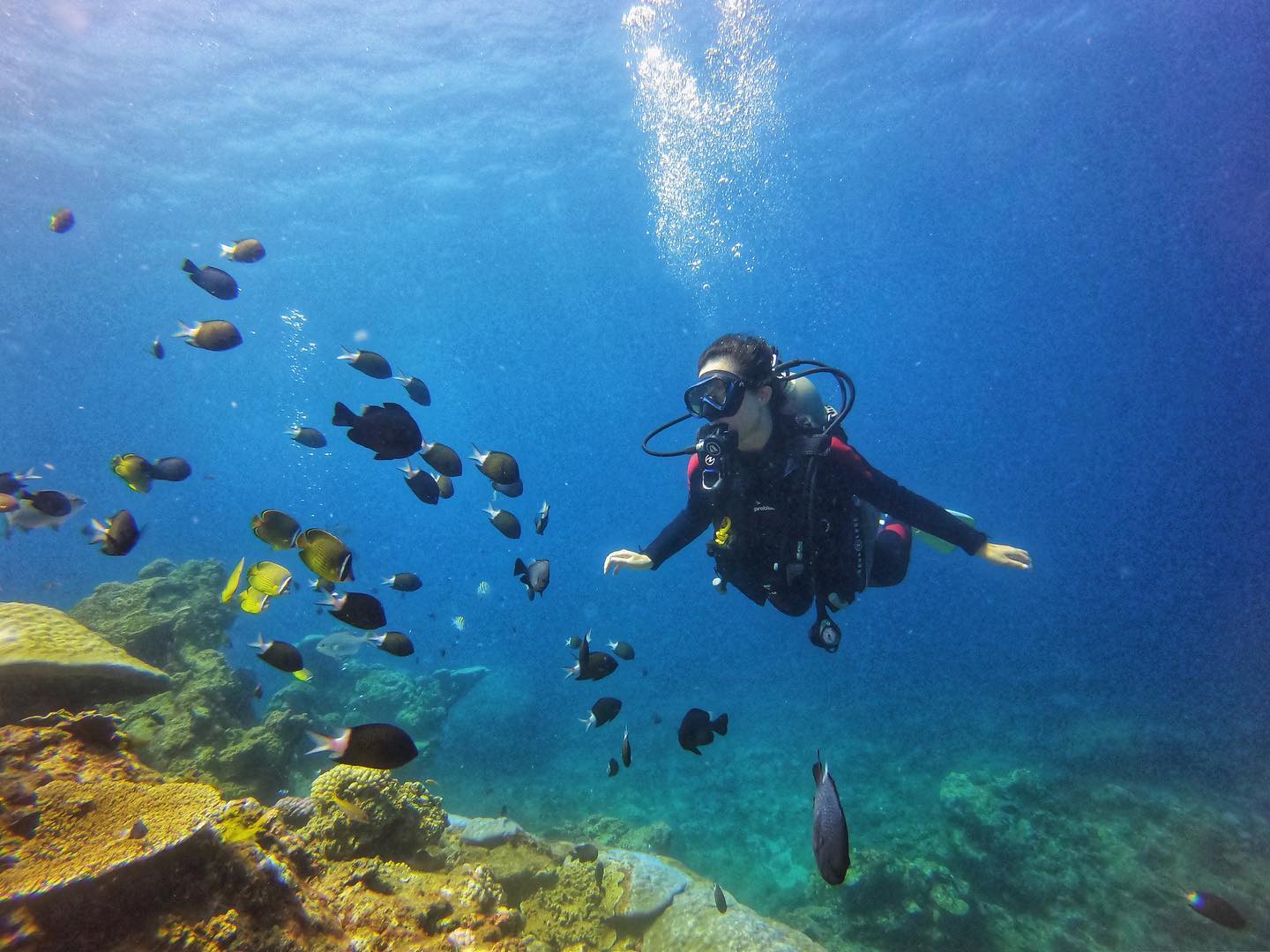 被譽為「國際級潛水天堂」的綠島,是許多人心目中首選的潛水勝地。溫暖的黑潮洋流劃過島嶼西側,豐富魚群與種類多元的珊瑚礁在此形成得天獨厚的地理環境,孕育出多彩多姿的海洋生態。島上除了柴口、石朗、大白沙等知名潛水熱點,也有少數人才知道的潛水秘境,在天氣晴朗、風浪較小的日子裡,海中能見度平均達30-40米,可以一覧水中奇觀。如果你正煩惱著今年的暑假行程,不妨選擇到綠島體驗暢遊藍海的樂趣,讓今年夏天充滿不一樣的色彩!