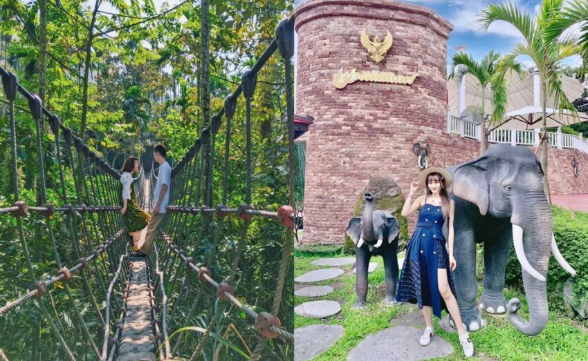 古坑有一座充滿濃濃泰式風情的渡假村,占地遼闊,一進村,就可以見到金碧輝煌的入口獅象、泰式高腳屋及壯觀的大象雕像等泰風設計巧思。