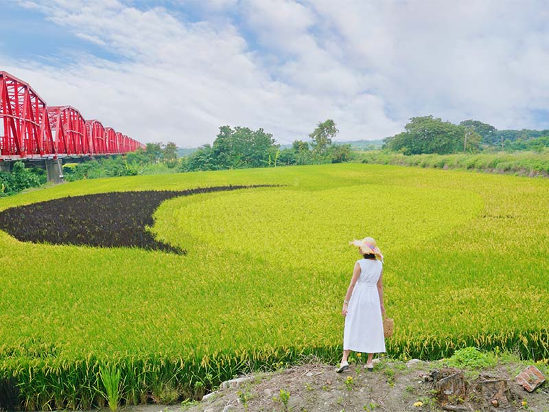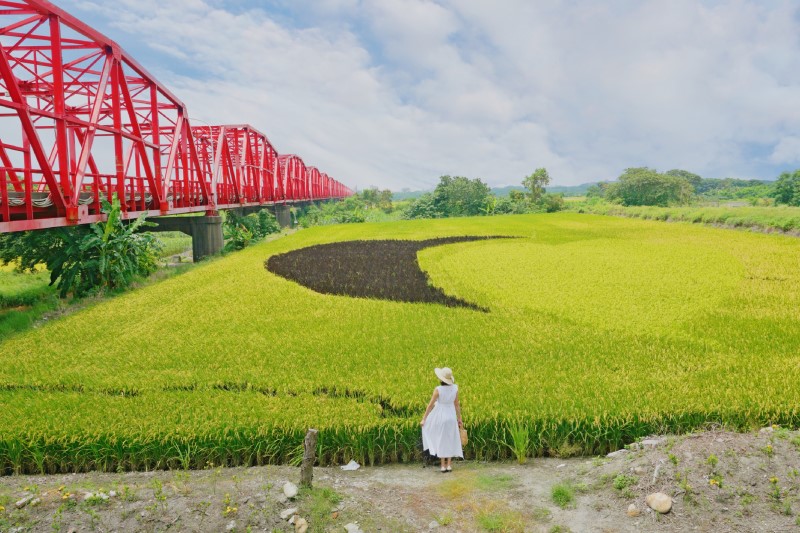環島必經之路「西螺大橋」位於雲林縣與彰化縣之間,即使兩地已增建許多橋樑,卻都抵擋不住專屬「西螺大橋」的古建築歷史風情,而在西螺大橋北端有處雙心彩繪稻田,整片綠油油的水稻景緻也吸引許多人駐足欣賞。