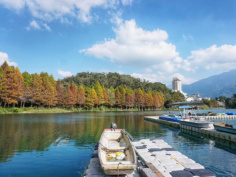 秋冬正值全台落羽松換上秋冬裝的季節,南投日月潭也有一處逐漸轉黃和紅色的落羽松林可以欣賞,周末假日就來這裡欣賞美景,騎腳踏車或搭船來場日月潭一日遊。