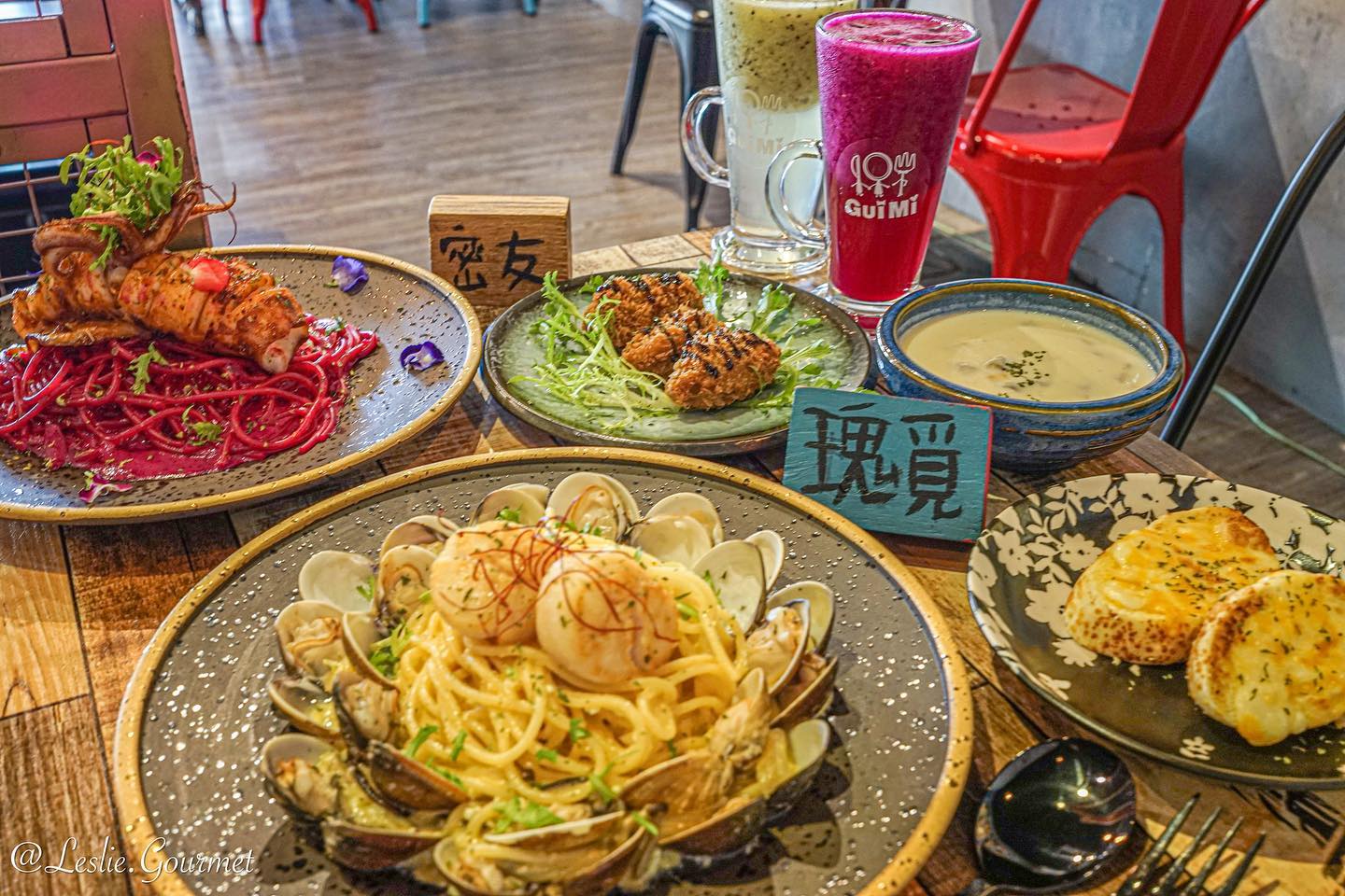 以視覺&味覺知名的逢甲餐廳「瑰覓Gui Mi」,就是要讓你帶著你的閨蜜一起來吃,餐廳會自己熬煮9種不同的醬汁,搭配上大份量的食材,讓人一看到就能目不轉睛。多到爆炸的蛤蠣、還有超級浮誇的牛排堆的等餐點,不僅食材豐富,口味更是好吃,讓人會想要回訪的那種,實在是俗夠大碗的義大利麵料理呢~