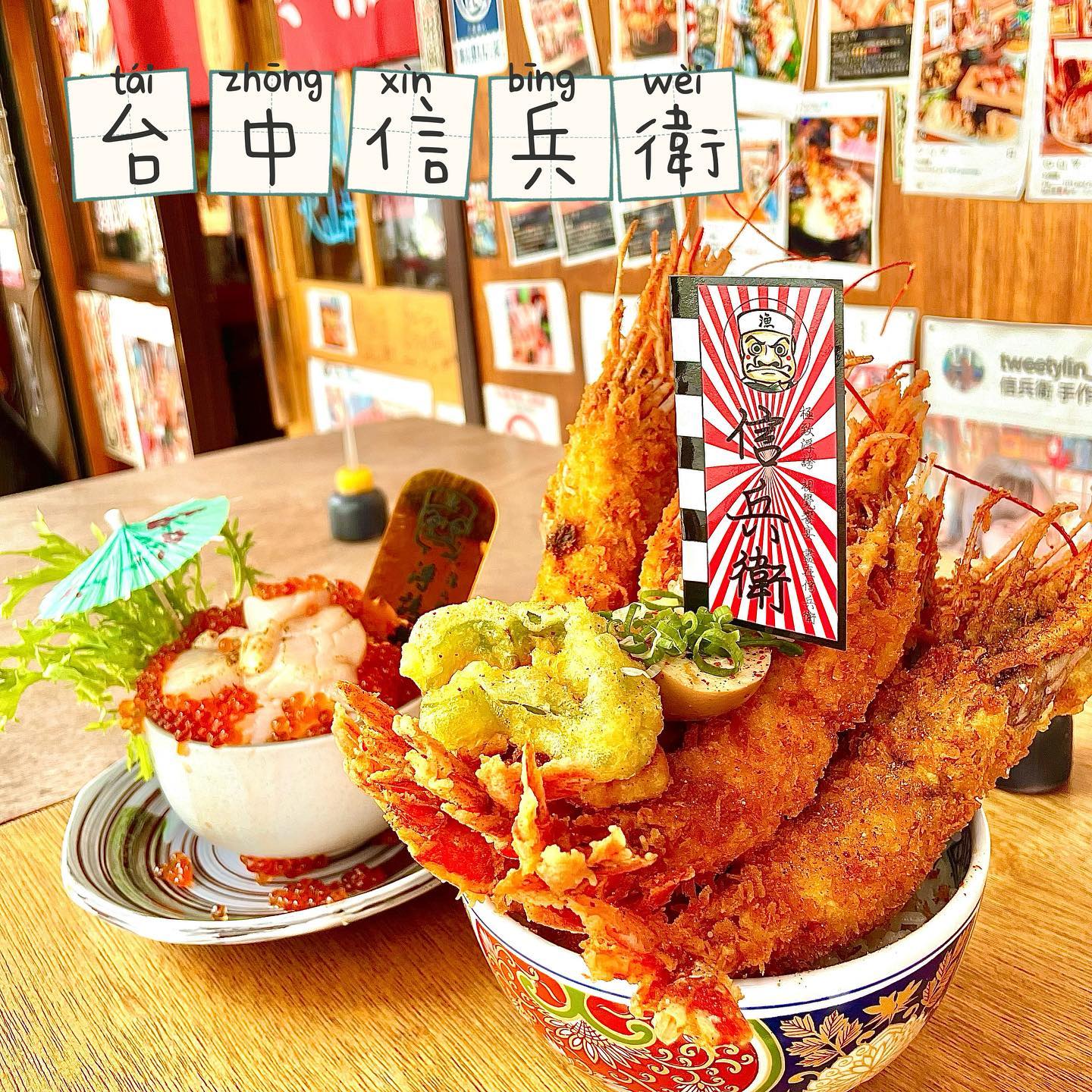 信兵衛手作丼飯壽司走的是餐點的浮誇,主打日本料理丼飯,料多到滿出來,整體裝潢也採取日本氛圍,一秒穿越到日本街頭!不管是蝦子,還是干貝,甚至是鮭魚,每一項料理都十分新鮮,給料又非常大方,讓人每一口都吃到海鮮的鮮甜。不單單只是外表浮誇而已,實體吃起來也非常令人嘖嘖稱奇,沒吃過的人來台中絕對要試試看!