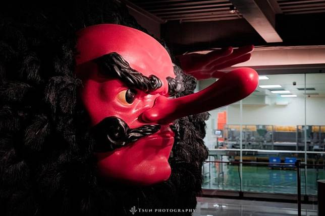 一踏進室內「手信霧隱城」就被巨大的日本武將頭盔鎧甲震撼住,而且臉譜還會不斷變動,後面還有360度環形LED屏幕劇場,裡面播放著手信霧隱城的故事介紹,充斥著日本風景配上音效準備讓遊客來場視覺饗宴,經過如稻荷神社的絕美千本鳥居步道,則能通往夢幻的燈籠鏡面隧道,結合了鏡面巧思把閃亮燈籠海化成萬花筒意象,二樓還有巨大天狗仙人超壯觀,每個佈置都成為打卡熱點!