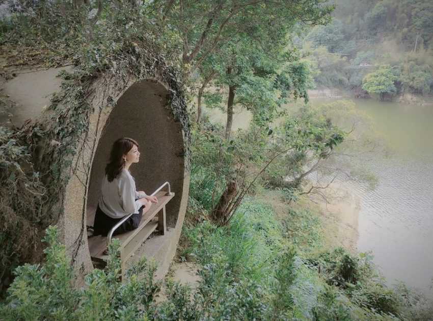 日新島入園門票$100/人,可折抵園區消費,苗栗縣民可出示身份證享免入園,水榭樓台是島上唯一的咖啡館,佈置簡約清爽、空間寬闊舒適,島上動物與人群共生,既逗趣又可愛!島上有許多大大的水管洞穴,走進便能欣賞唯美的湖上風光,成為另類的觀景台,也是大家最愛的打卡拍照點喔!