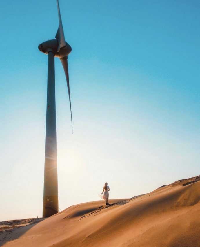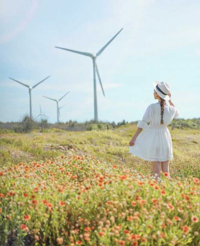 約兩公里長的海岸線還串連附近心雕居、苑裡濱海藝文中心,及苑港漁港等景點。海岸綿延,沙灘寬廣,保持著原始自然的樣貌,網美最愛的就是在沙灘上與遠處沙丘竹籬護沙、林立在西濱沙岸巨大發電風車合照,來一張荒野沙漠照,到此一遊,絕對不虛此行!