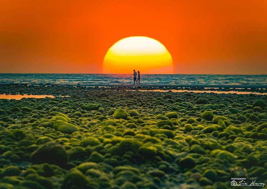 有人說,海是最能治癒人心的地方,讓人能將煩惱拋諸腦後。苗栗擁有最綿長的西部海岸線,來到「苑裡出水沙灘」,石滬上布滿了石蚵與藤壺,若算準時間遇上滸苔大爆發,石頭上有如撒滿抹茶粉,夕陽伴隨抹茶石海灘,真的美極了!